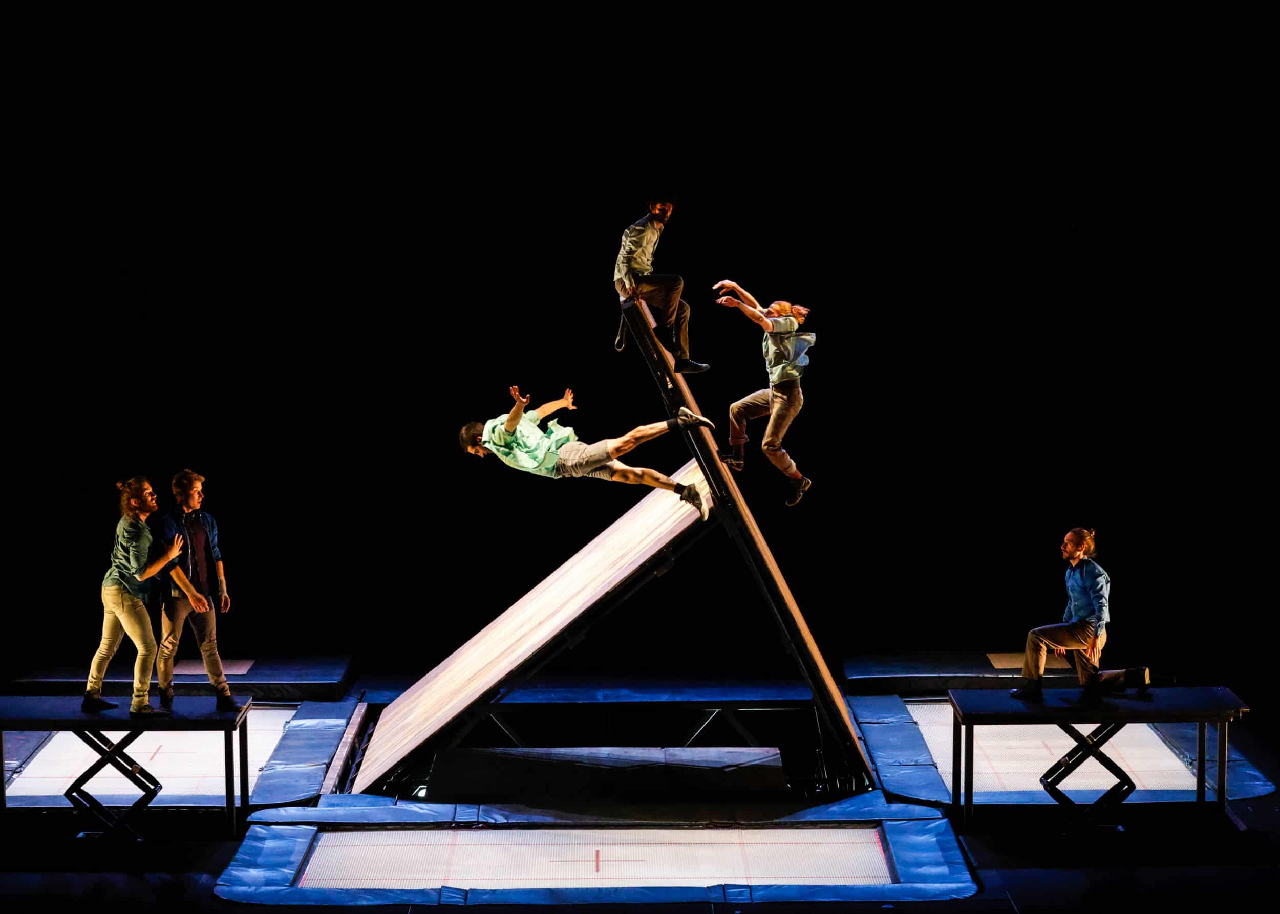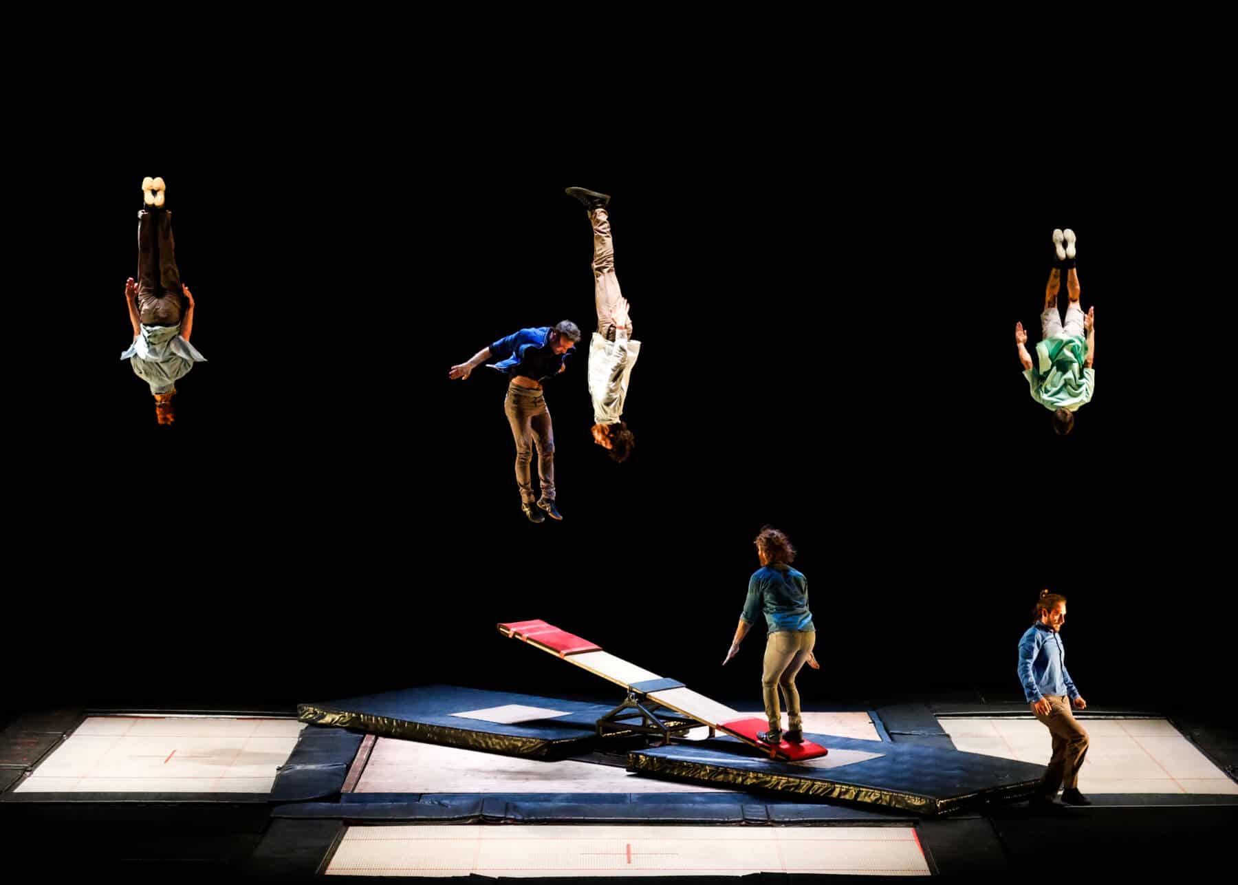 Un spectacle qui décline l’art du trampoline sur tous les tons, et impressionne par la puissance et la grâce de ses six interprètes.
